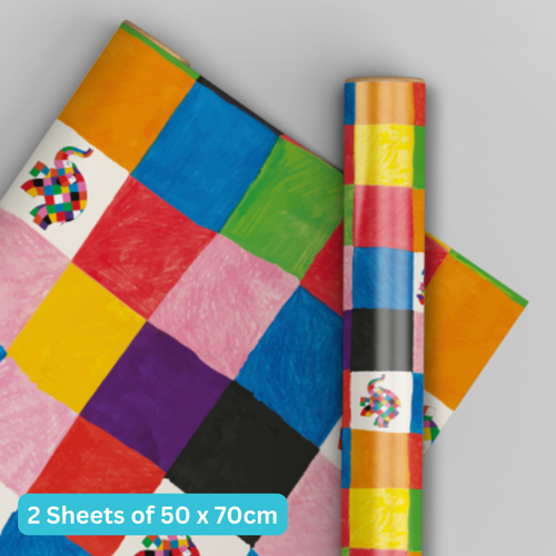 Elmer The Patchwork Elephant 2 Sheets & 2 Tags Wrapping Paper