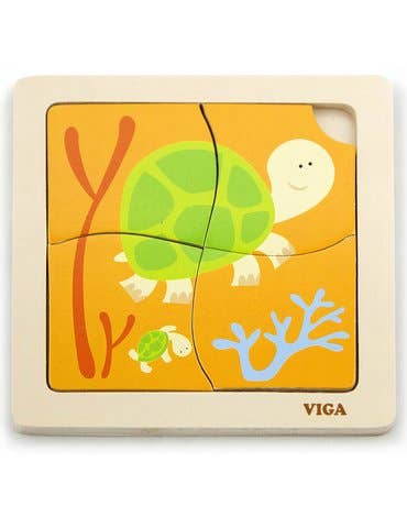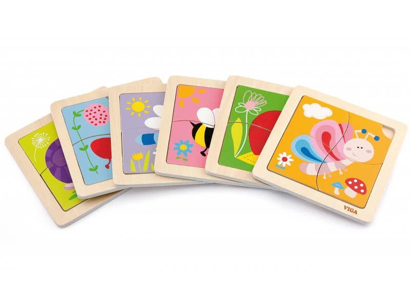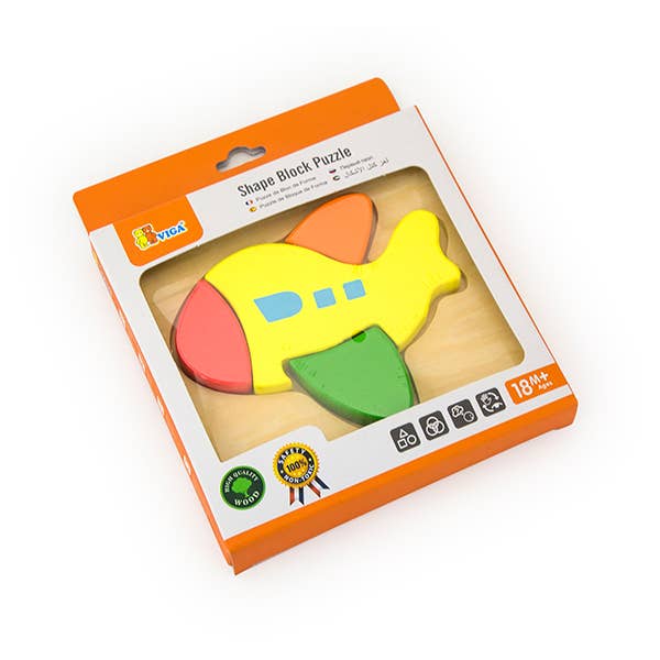 Handy Block Puzzles Each puzzle contains 3-5 raised pieces perfect for little hands to manipulate. It is a great introduction for colours, shapes, basic objects and it helps develop finger motor skills. Product Information * Size: 145 x 145 x 18 mm * Recommended age: 18 months + Safety All Viga toys are made with non-toxic paints & inks and comply with EN71 & ASTM toy standards.
