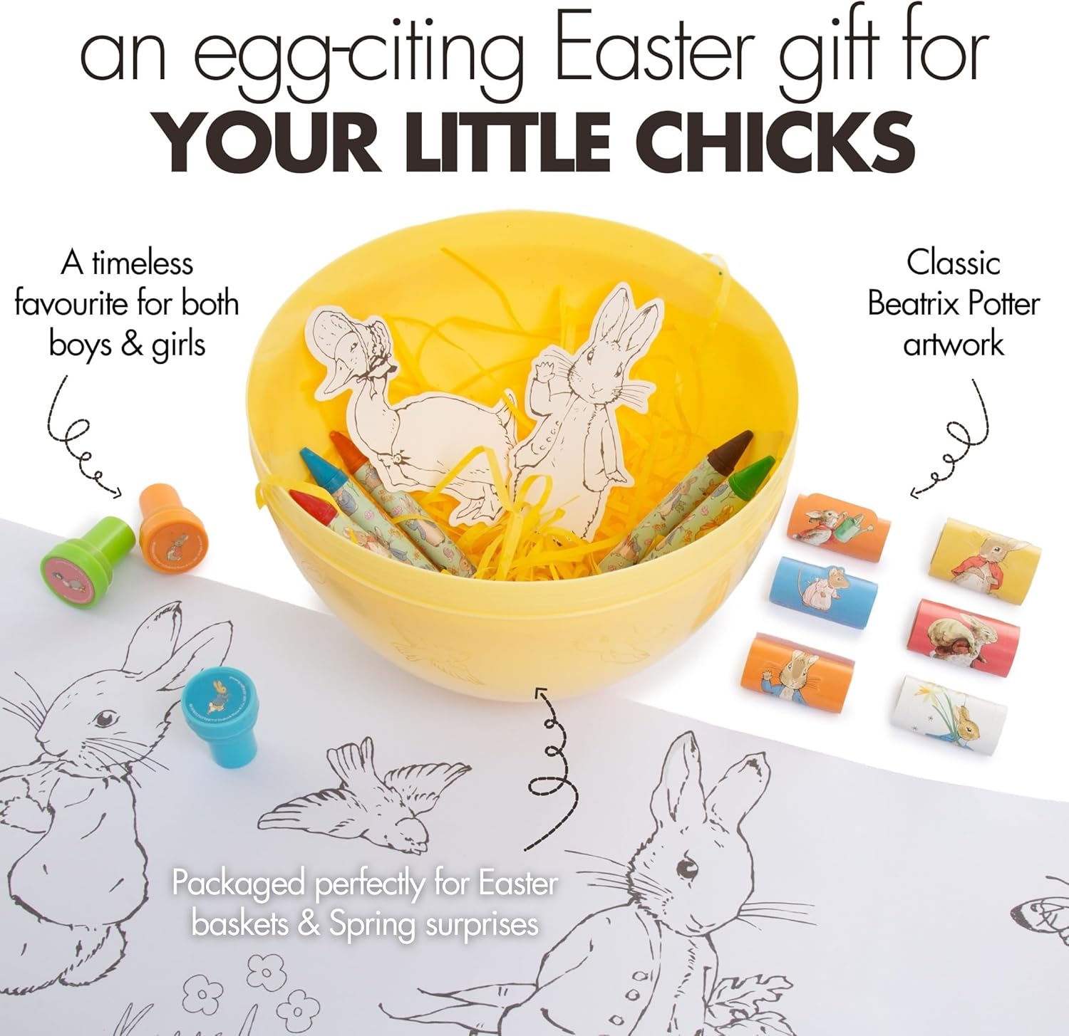 Inside, young fans will discover themed colouring sheets, crayons, stickers and creative activities inspired by Beatrix Potter’s beloved character. Perfect for Easter gifting, rainy day play, or springtime crafting, this reusable tin makes a wonderful treat for Peter Rabbit lovers.