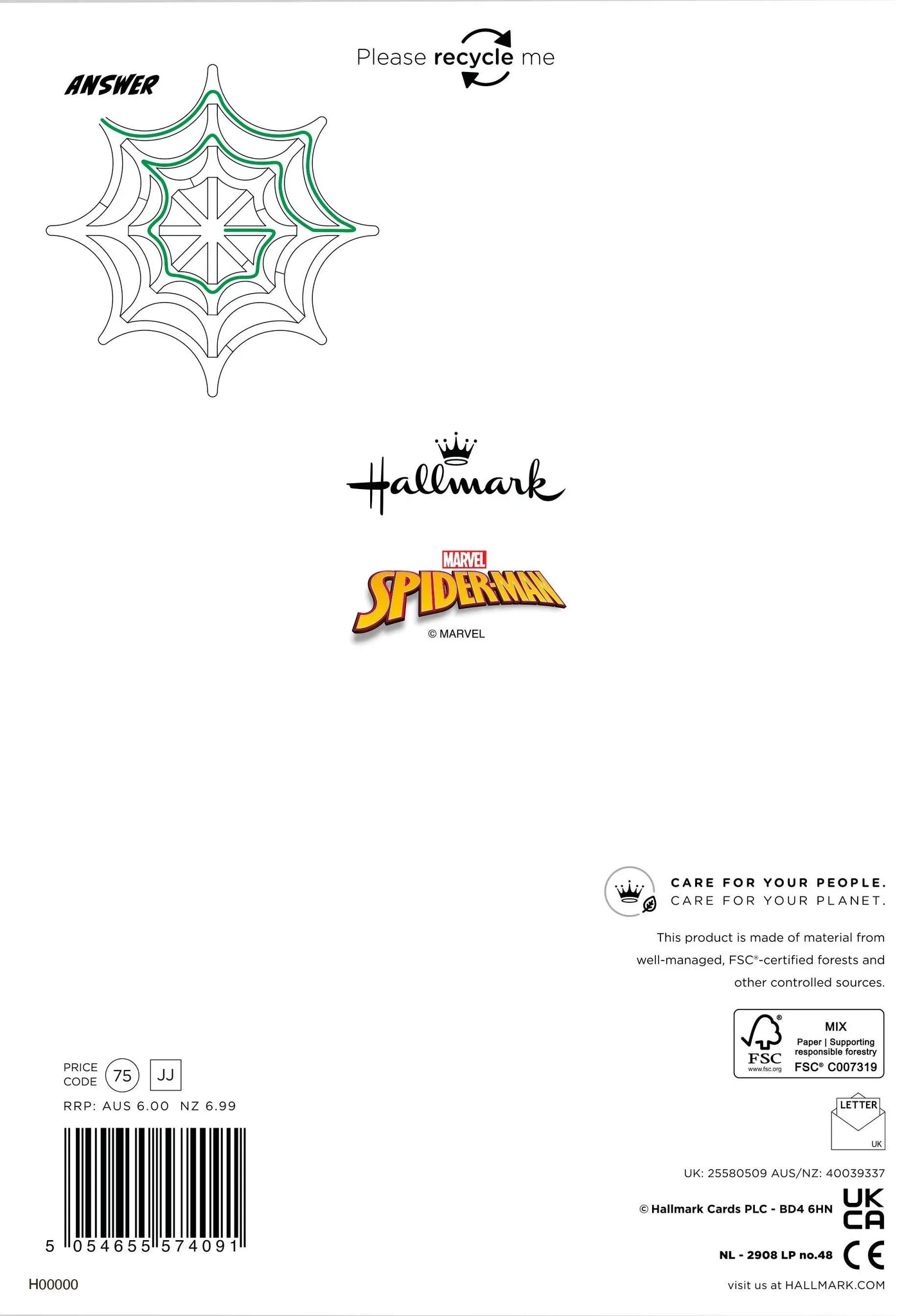 Our Spider-Man collection features everyone’s favourite webbed wall-crawler in a variety of dynamic, action-packed poses. Paired with zippy, high-energy editorial and a classic Spidey colour scheme, these cards are perfect for every spider-fan!  16.3 cm width x 23.3 cm height This product is made using material from well-managed, FSC®-certified forests and other controlled sources. Comes complete with co-ordinating branded envelope