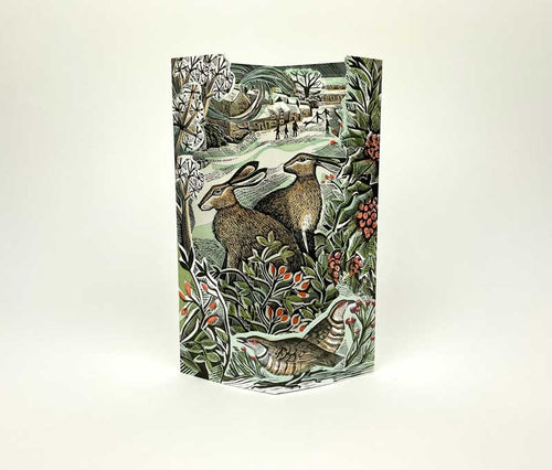 Watching Hares by Angela Harding Blank Concertina Greeting Card and envelope