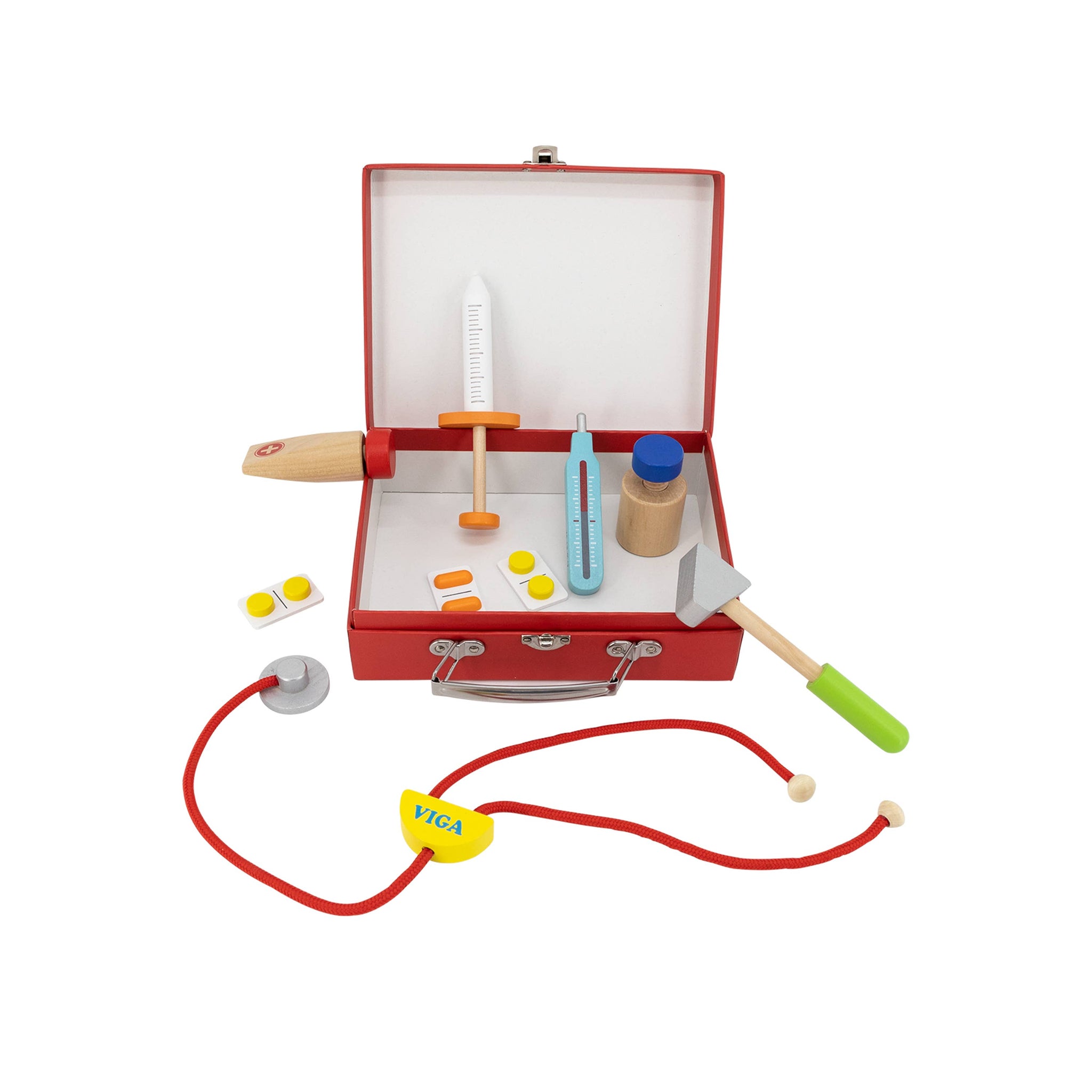 Includes stethoscope, capsules, tablets, thermometer, syringe, medicine bottle, cream bottle and hammer.